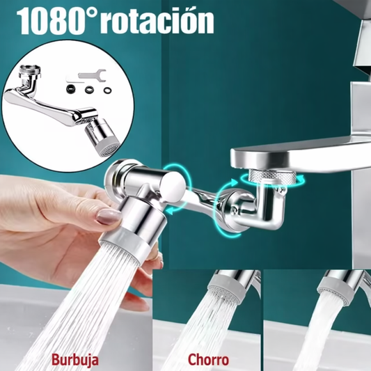Adaptador de Grifo Giratorio 1080° con Doble Chorro – Ahorra Agua y Limpia sin Salpicaduras